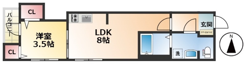 | 間取り詳細 | LDK 8畳 、 洋室 3.5畳 |