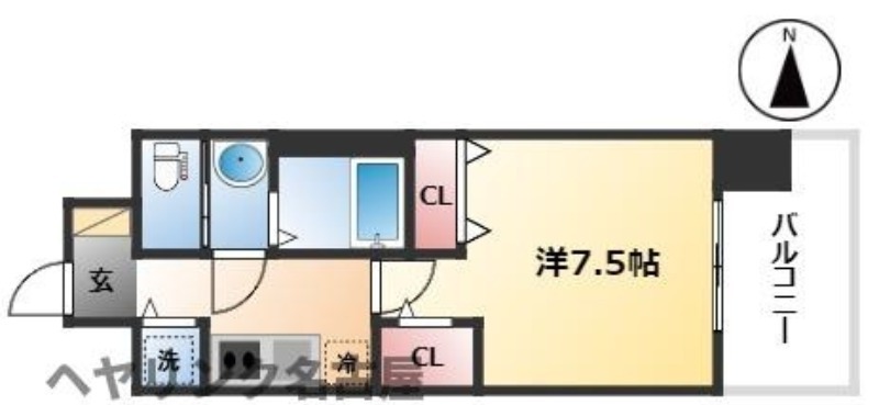 | 1K | 洋室 7.5畳 | 25.95㎡ |