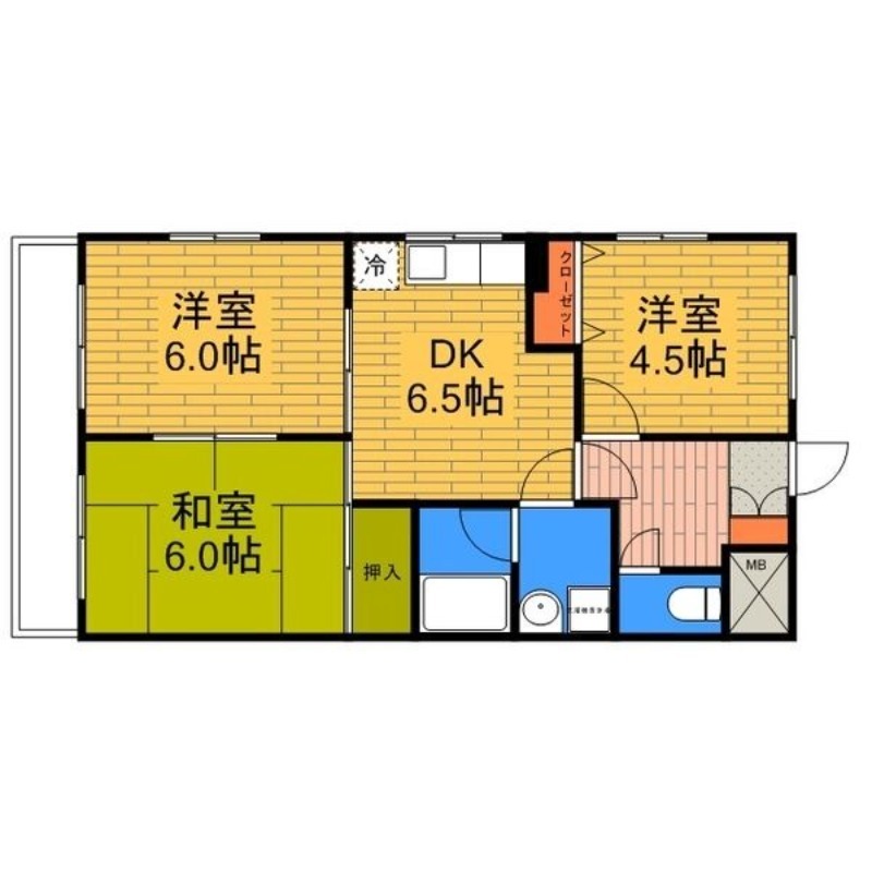 | 間取り詳細 | DK 6.5畳 、 洋室 4.5畳 、 和室 6畳 、 洋室 6畳 |