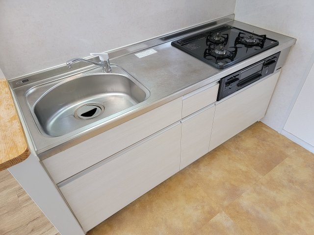 | 設備 | ガス(都市ガス)、インターホン(TVモニター付き)、専用ゴミ置き場(あり)、駐輪場、全室向き(南向き)、南向き部屋数(2室)、南向きリビング、角部屋、フローリング、全居室フローリング、照明器具、ベランダ・バルコニー、収納スペース、押入れ、下駄箱、バス・トイレ別(別室)、シャワー、脱衣所、給湯、温水洗浄便座、洗面台、洗面所独立、シャンプードレッサー、洗面所にドア、洗濯機置き場(室内)、コンロ口数(3)、コンロ種類(都市ガス)、グリル、システムキッチン、カウンターキッチン、エアコン、エアコン台数(1)、BS、CATV、地デジ(UHF)、光ファイバー | ||