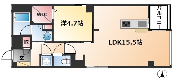 | 間取り詳細 | LDK 15.5畳 、 洋室 4.7畳 |