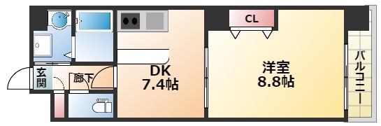 | 間取り詳細 | DK 8畳 、 洋室 8.8畳 |