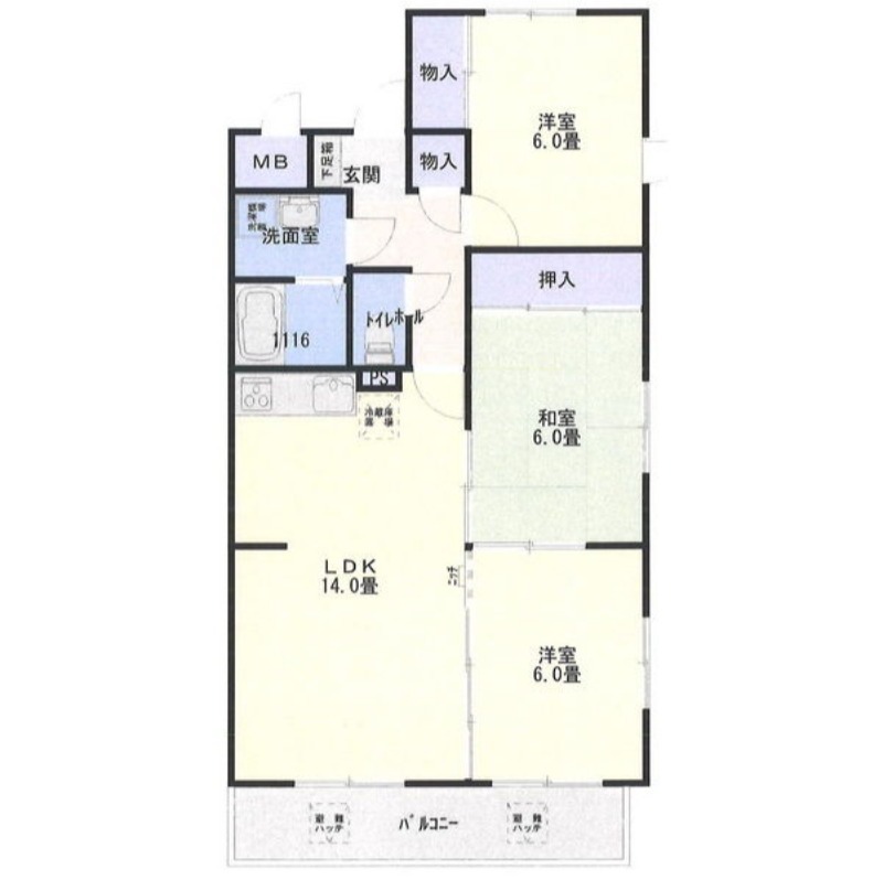 | 間取り詳細 | LDK 14畳 、 洋室 6畳 、 洋室 6畳 、 和室 6畳 |