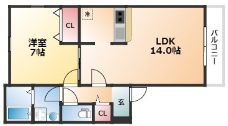| 間取り詳細 | LDK 14畳 、 洋室 7畳 |