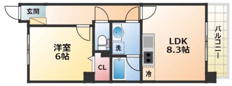 | 間取り詳細 | 洋室 6畳 、 LDK 8.3畳 |