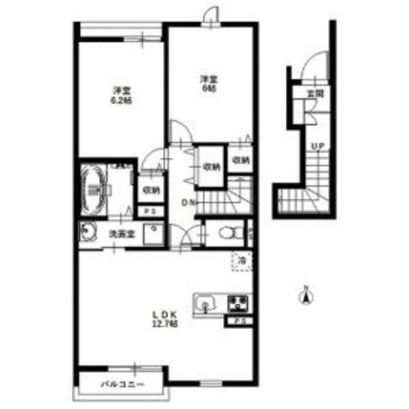 | 間取り詳細 | LDK 12.7畳 、 洋室 6.2畳 、 洋室 6畳 |