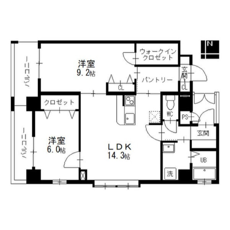 | 間取り詳細 | LDK 14.3畳 、 洋室 9.2畳 、 洋室 6畳 |