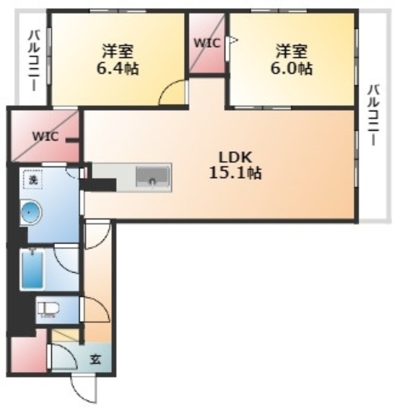 | 間取り詳細 | LDK 15.1畳 、 洋室 6.4畳 、 洋室 6畳 |