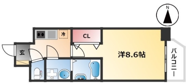 | 1K | 洋室 8.6畳 | 26.1㎡ |