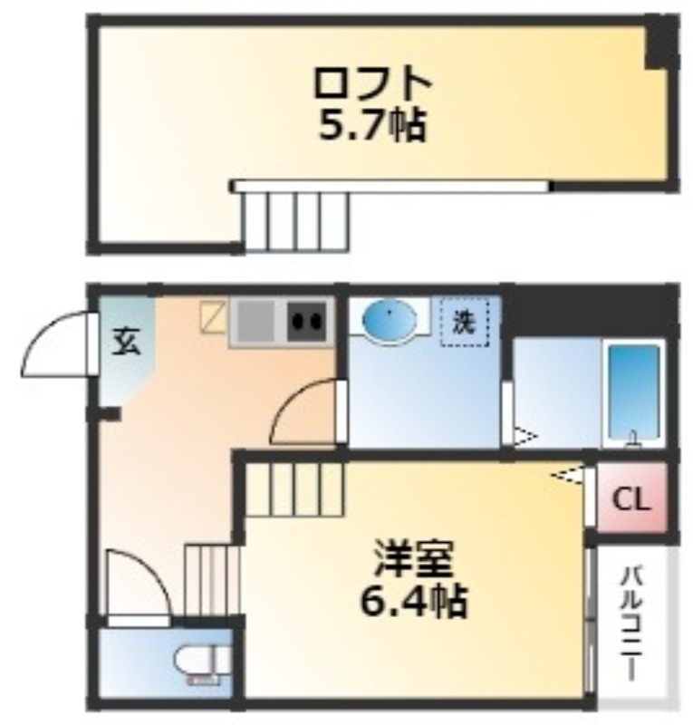| 1K | 洋室 6.4畳 | 22.09㎡ |