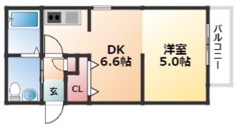 | 間取り詳細 | DK 6.6畳 、 洋室 5畳 |