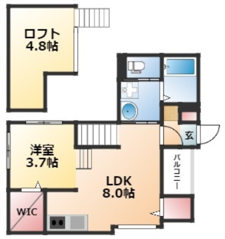 | 間取り詳細 | LDK 8畳 、 洋室 3.7畳 |