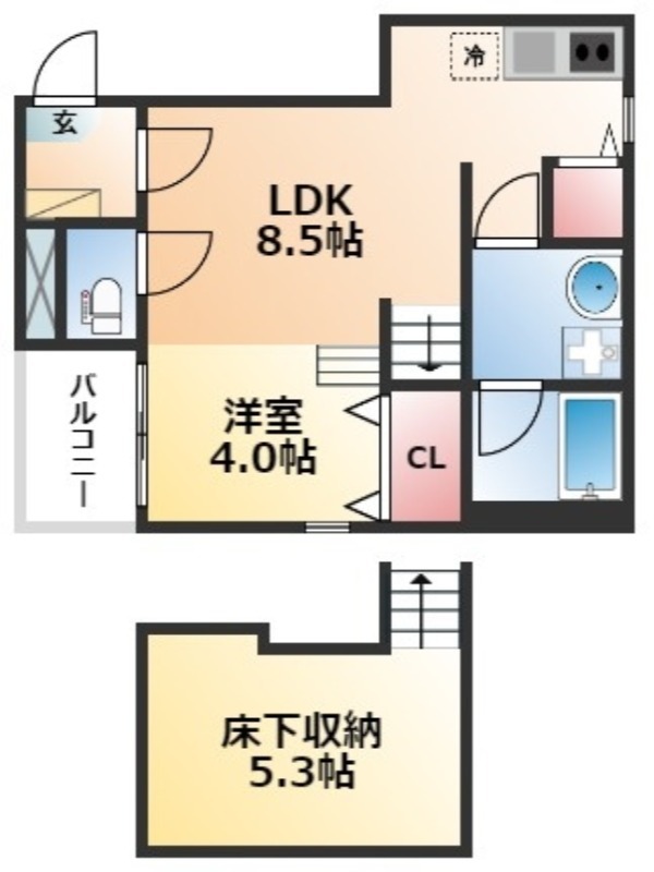 | 間取り詳細 | LDK 8.5畳 、 洋室 4畳 |