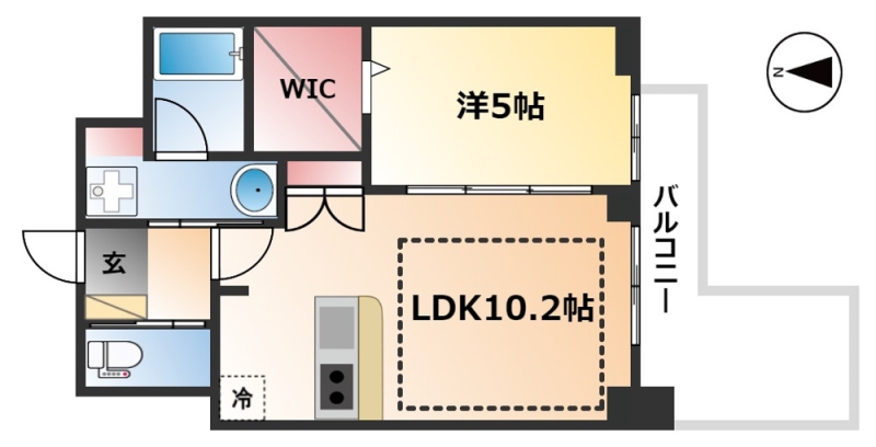 | 間取り詳細 | 洋室 5畳 、 LDK 10.2畳 |
