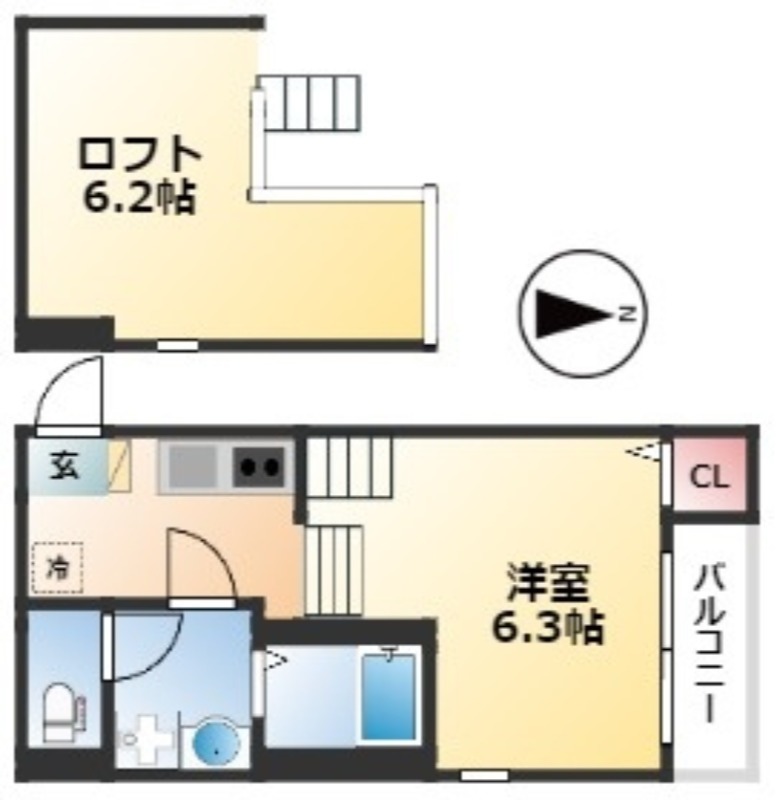 | 1K | 洋室 6.3畳 | 20.24㎡ |