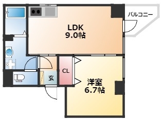 | 間取り詳細 | LDK 9畳 、 洋室 6.7畳 |