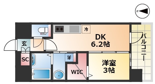 | 間取り詳細 | DK 6.2畳 、 洋室 3畳 |