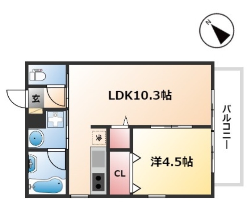 | 間取り詳細 | 洋室 4.5畳 、 LDK 10.3畳 |