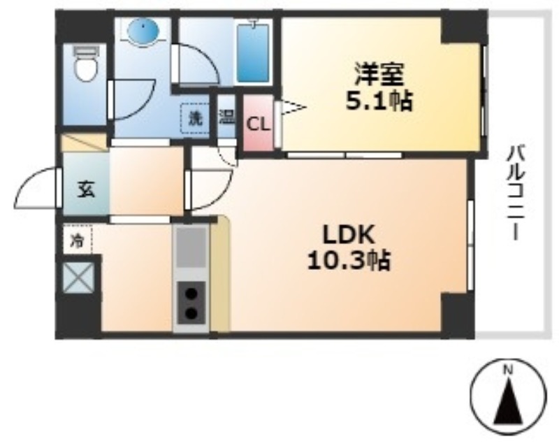 | 間取り詳細 | LDK 10.3畳 、 洋室 5.1畳 |