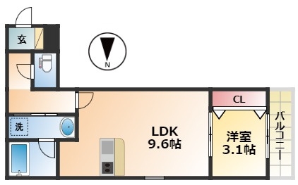 | 間取り詳細 | LDK 9.6畳 、 洋室 3.1畳 |