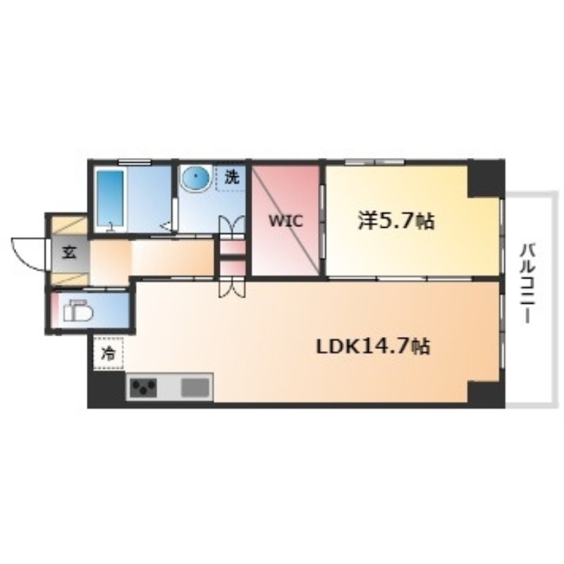 | 間取り詳細 | LDK 14.7畳 、 洋室 5.7畳 |
