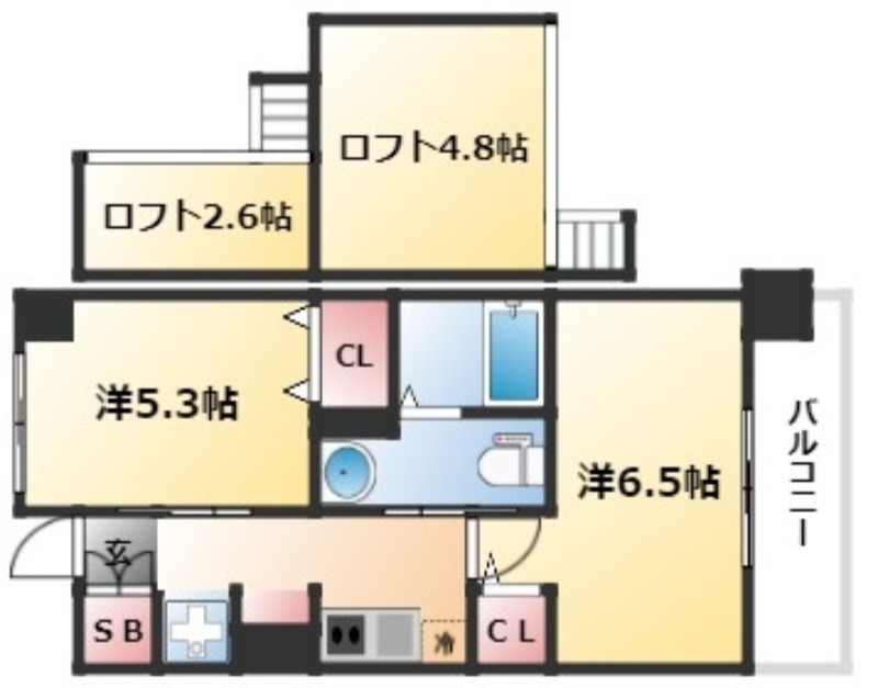 | 間取り詳細 | 洋室 6.5畳 、 洋室 5.3畳 、 その他 2.6畳 |