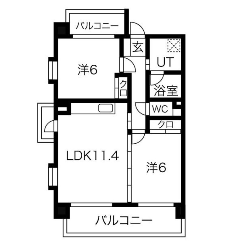 間取り詳細 | LDK 11.4畳 、 洋室 6畳 、 洋室 6畳 |