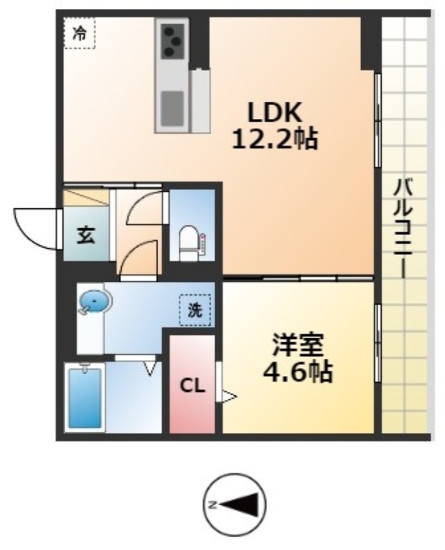 | 間取り詳細 | LDK 12.2畳 、 洋室 4.6畳 |