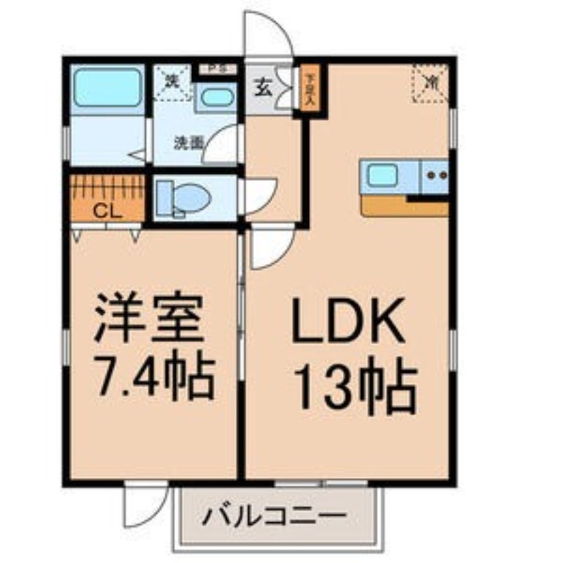 | 間取り詳細 | 洋室 7.4畳 、 LDK 13畳 |