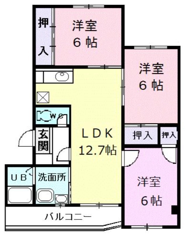 | 間取り詳細 | 洋室 6畳 、 洋室 6畳 、 洋室 6畳 、 LDK 12.7畳 |