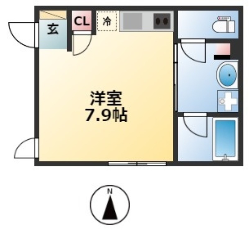 ワンルーム | 洋室 7.9畳 | 21.26㎡ |