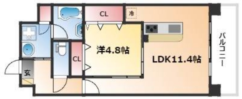 | 間取り詳細 | 洋室 4.8畳 、 LDK 11.4畳 |
