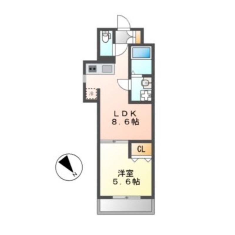| 間取り詳細 | 洋室 5.6畳 、 LDK 8.6畳 |