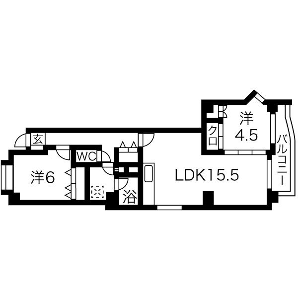 | 間取り詳細 | 洋室 6畳 、 LDK 15.5畳 、 洋室 4.5畳 |