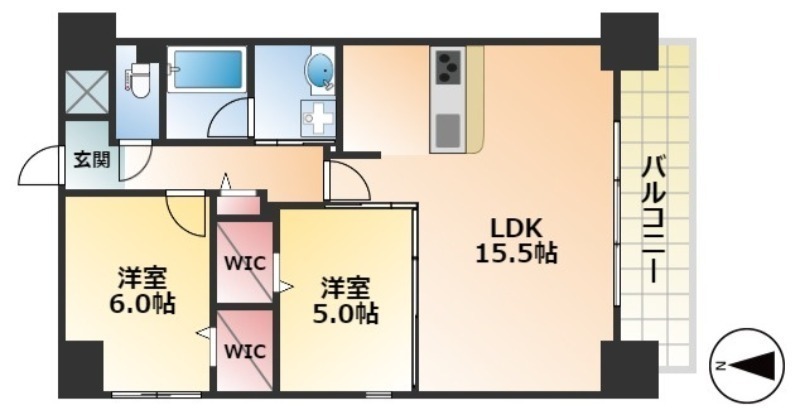 | 間取り詳細 | LDK 15.5畳 、 洋室 6畳 、 洋室 5畳 |