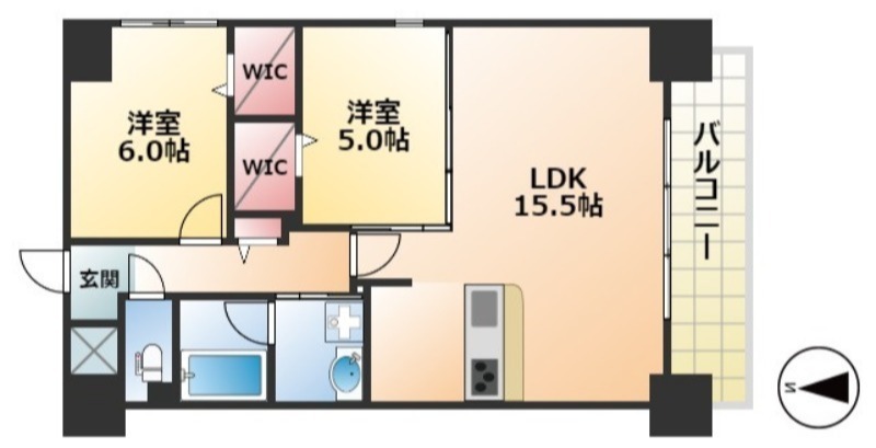 | 間取り詳細 | LDK 15.5畳 、 洋室 6畳 、 洋室 5畳 |