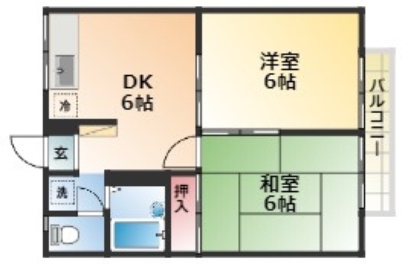 | 間取り詳細 | 和室 6畳 、 洋室 6畳 、 DK 6畳 |