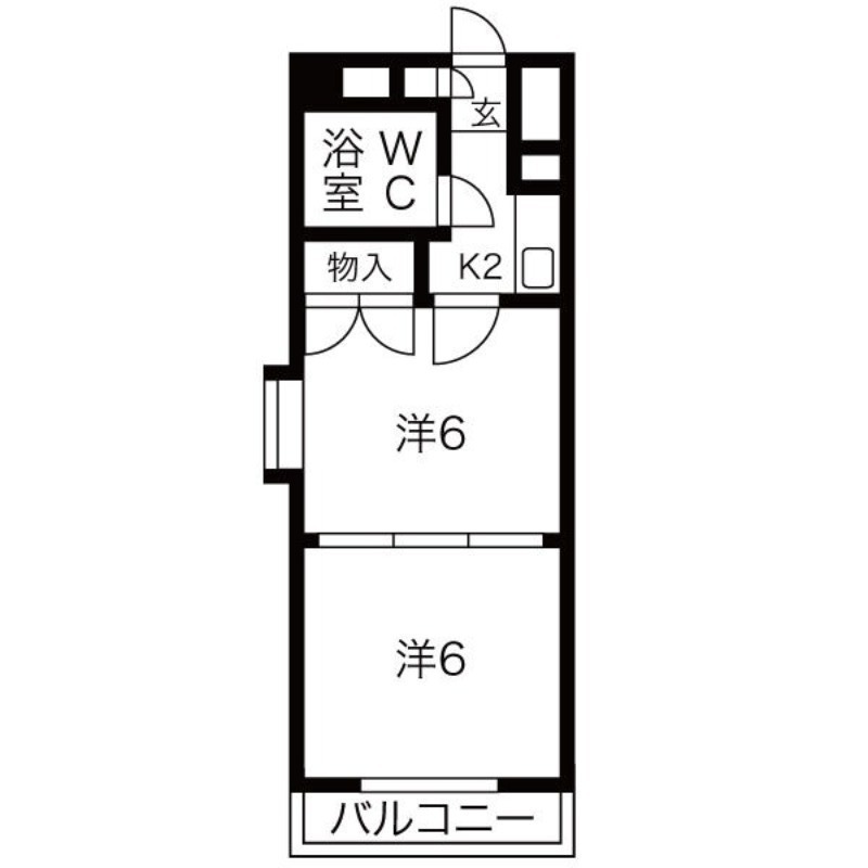 | 間取り詳細 | 洋室 6畳 、 洋室 6畳 、 K 2畳 |