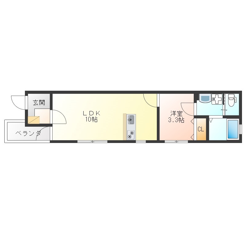 | 間取り詳細 | LDK 10畳 、 洋室 3.3畳 |