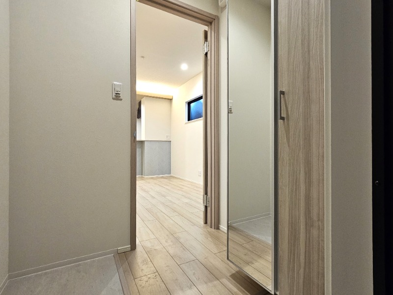 新築、駐車場有、オートロック、宅配ボックス、角部屋、バストイレ別、追い焚き、浴室乾燥機、温水洗浄便座、シャンプードレッサー