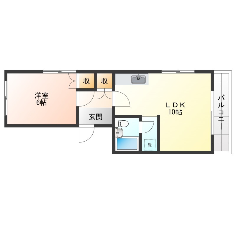 | 間取り詳細 | 洋室 6畳 、 LDK 10畳 |