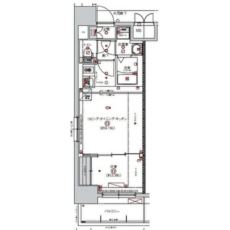 | 間取り詳細 | 洋室 3.3畳 、 LDK 9.1畳 |