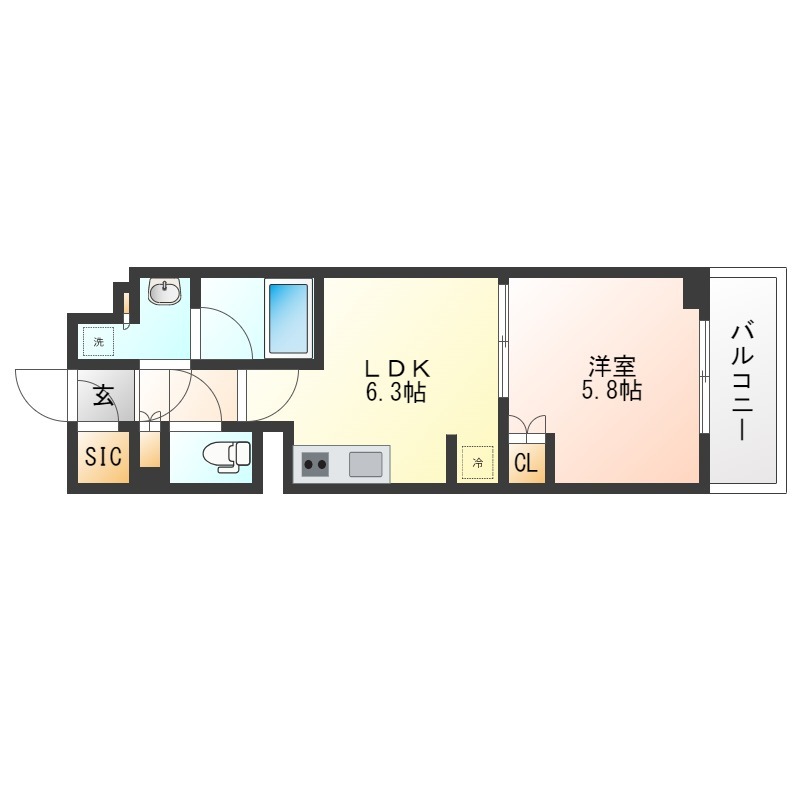 LDK 6.3畳 、 洋室 5.8畳