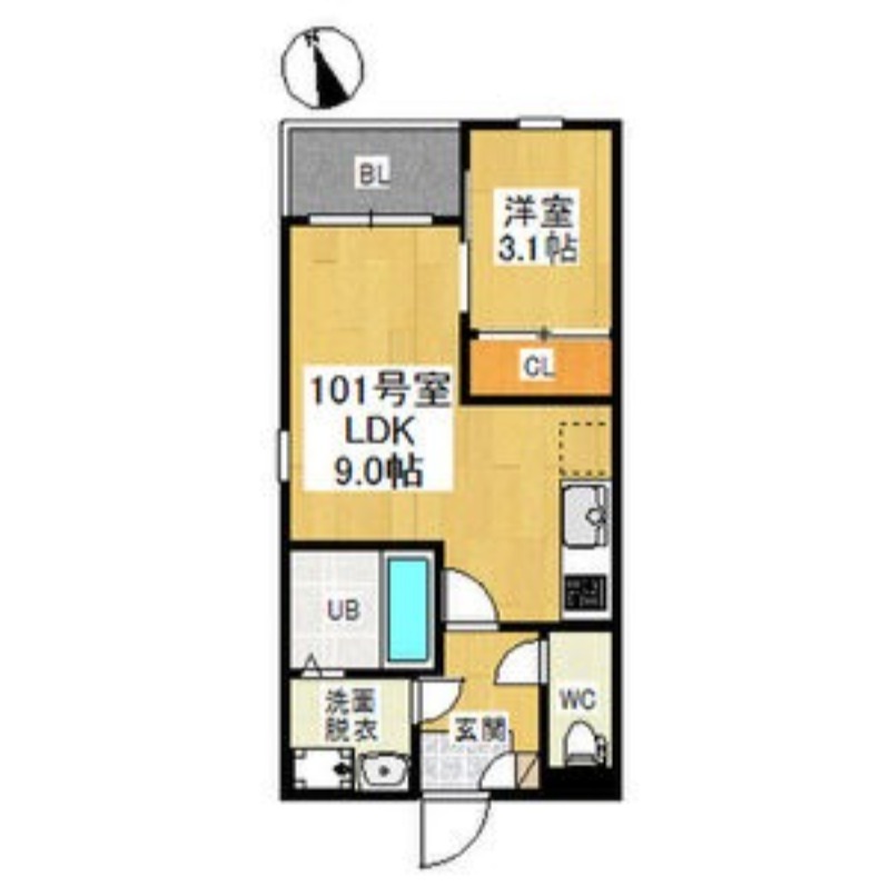 | 間取り詳細 | LDK 9畳 、 洋室 3.1畳 |
