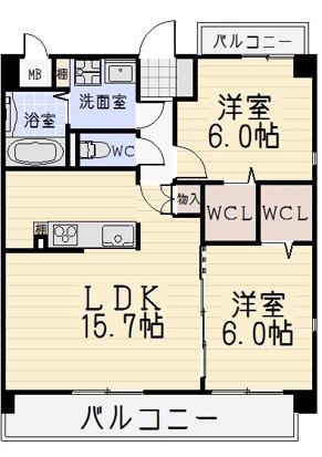| 間取り詳細 | LDK 15.7畳 、 洋室 6畳 、 洋室 6畳 |
