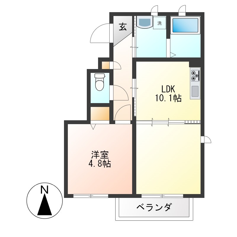 | 間取り詳細 | LDK 10.1畳 、 洋室 4.8畳 |