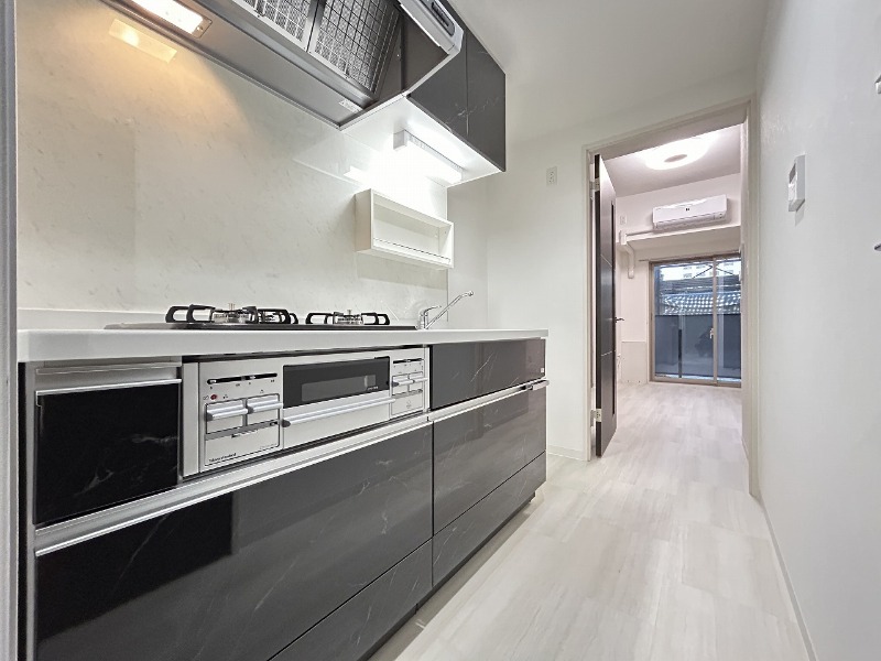 ガス(都市ガス)、インターホン(TVモニター付き)、防犯カメラ、オートロック、宅配ボックス、駐輪場、フローリング、ベランダ・バルコニー、クローゼット、クローゼット数(1)、下駄箱、バス・トイレ別(別室)、シャワー、浴室乾燥機、脱衣所、温水洗浄便座、洗面所独立、三面鏡付き洗面化粧台、洗濯機置き場(室内)、コンロ口数(3)、コンロ種類(都市ガス)、グリル、システムキッチン、エアコン、エアコン台数(1)、BS、光ファイバー、インターネット使用料無料 |