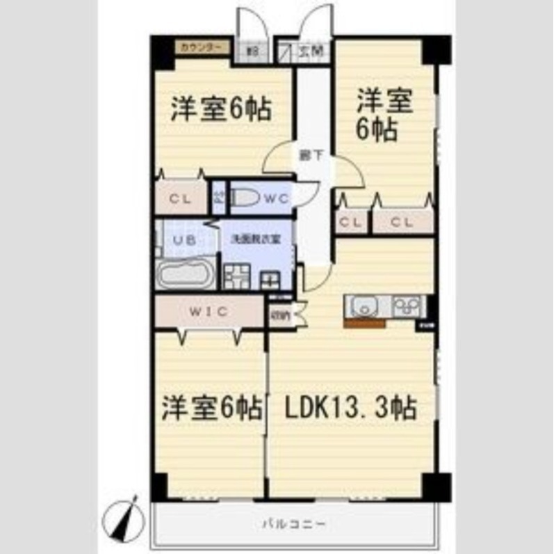 | 間取り詳細 | LDK 13.3畳 、 洋室 6畳 、 洋室 6畳 、 洋室 6畳 |