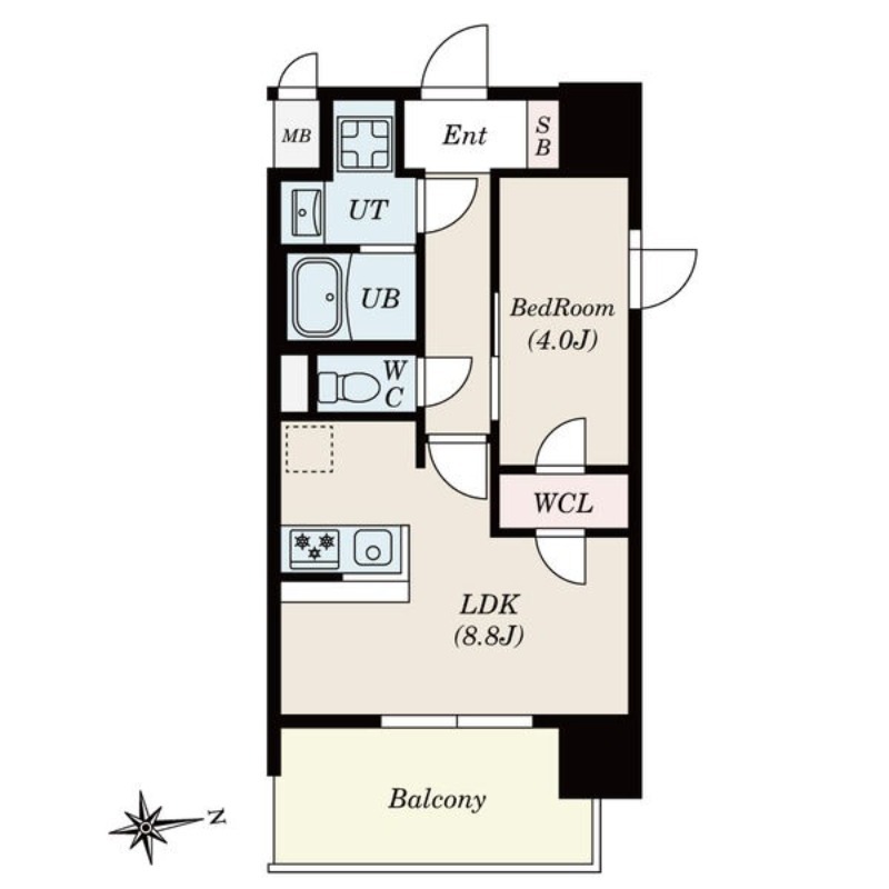 | 間取り詳細 | 洋室 4畳 、 LDK 8.8畳 |