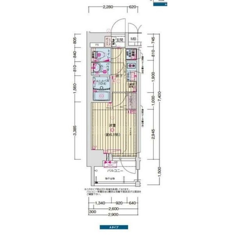 1K | 洋室 6.1畳 | 21.46㎡ |